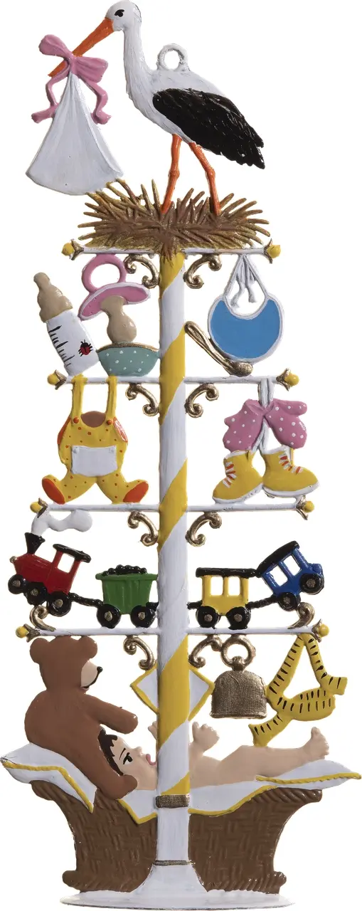 16 x 7 cmEntdecken Sie ein zauberhaftes Denkmal zur Feier eines neuen Lebensbeginns. Dieses kunstvolle Ensemble aus Zinn verewigt die Freude und Wunder der Geburt. Angeführt von einem stolzen Storch, der behutsam neues Leben bringt, und umgeben von verspielten Symbolen wie einem gemütlichen Bären, spielzeughaften Zügen und farbenfrohen Babyschuhen. Stehend auf einem festen Sockel, bildet es nicht nur einen Blickfang, sondern erzählt auch eine Geschichte von Hoffnung und neuen Anfängen. Ein liebevolles Geschenk zur Geburt, das von Generation zu Generation weitergereicht werden kann. Ideal für jeden Sammler oder als prächtige Dekoration im Kinderzimmer.