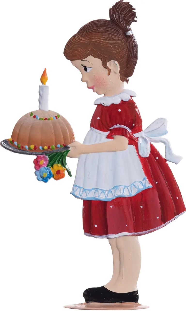 Diese 9 cm hohe Figur fängt einen bezaubernden Moment ein, in dem ein Mädchen stolz einen gerade gebackenen Kuchen präsentiert. Perfekt ausbalanciert, verleiht ihr zufriedenes Lächeln jeder Sammlung eine warme, heitere Note. Liebevoll detailliert, symbolisiert sie häusliche Freuden und die süßen Momente des Lebens. Ideal für Sammler, die das Flair von festlichen und fröhlichen Anlässen in ihrem Zuhause verbreiten möchten.