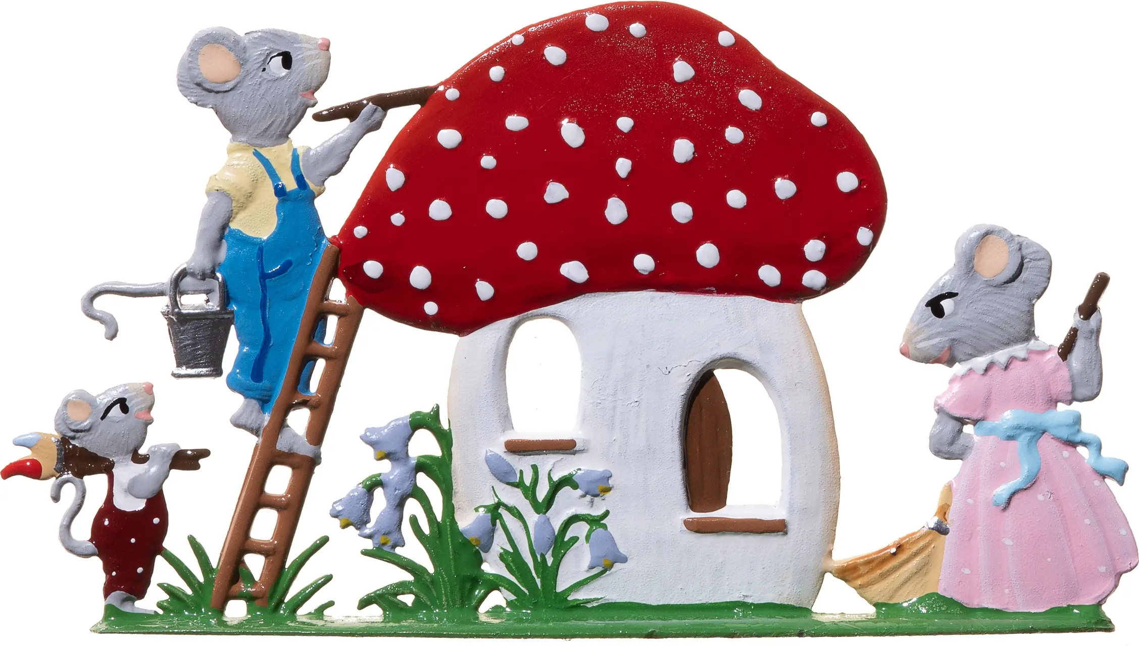 5 x 8 cmTauchen Sie ein in eine Welt voller Zauber mit der charmanten Figur "Mäusefamilie im Pilzhaus". Dieses entzückende Ensemble zeigt eine emsige Mäusefamilie bei ihren alltäglichen Verrichtungen. Mit viel Liebe zum Detail gestaltet, stellt jede dieser Figuren einen lebendigen Charakter dar, vom fleißigen Kehren bis zum geschickten Anstreichen. Positioniert auf einer stabilen Basis, ist diese liebenswürdige Miniatur ein perfektes Geschenk für Sammler und Märchenliebhaber. Mit einer Größe von 8 x 5 x 1,5 cm ist es die ideale Ergänzung für jede Frühjahrsdekoration und entführt den Betrachter in eine friedvolle, fröhliche Welt.