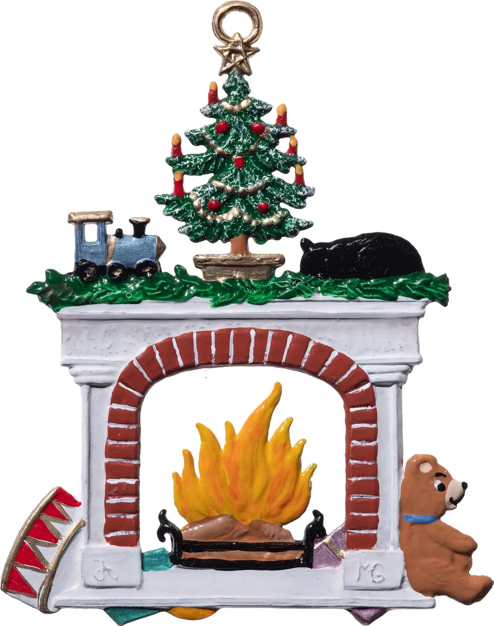 7 x 5 cmVerleihen Sie Ihrem Weihnachtsbaum einen Hauch von Gemütlichkeit mit diesem charmanten Baumanhänger. Er stellt eine idyllische Winterszene dar, die an kühle Tage am wärmenden Feuer erinnert. Ein detailreich gestalteter Kamin, über welchem sich eine festlich dekorierte Tanne erhebt, ist umgeben von einer schlafenden Katze, einem neugierigen Teddybären und liebevoll platzierten Geschenken. Ein Stück, das die Herzen bei jedem Fest höherschlagen lässt und die Magie der Feiertage in Ihr Zuhause bringt. Ideal für Sammler und als zauberhaftes Geschenk.