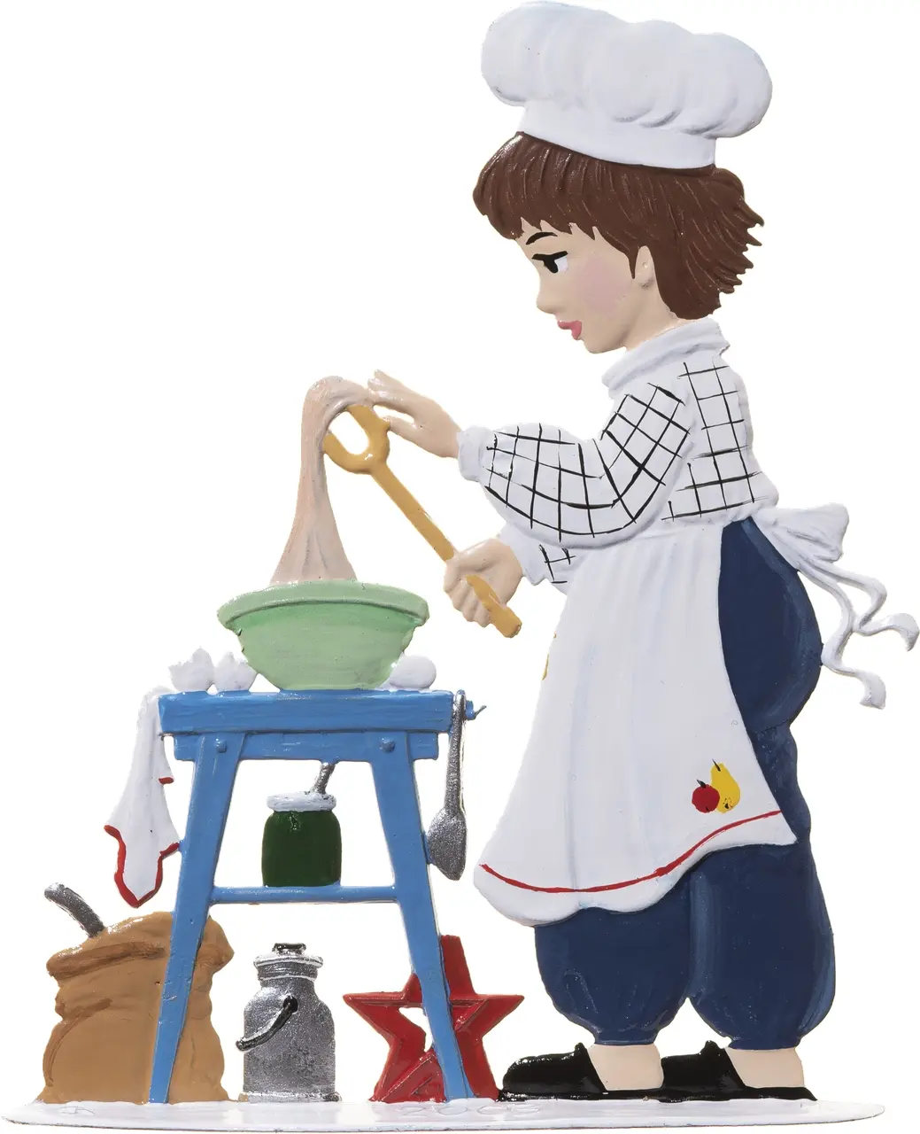 9 x 8 cmDieser bezaubernde kleine Bäcker, behängt mit Kochwerkzeugen und einem festen Griff an seinem Rührwerk, verkörpert die Freude des Frühlings und die unschuldige Begeisterung in der Küche. Mit einer Größe von 9x8 cm bringt diese charmante Figur Leben in jede Sammlung und strahlt Wärme, Engagement und die Liebe zum süßen Detail aus. Ein perfektes Geschenk für Liebhaber von Handarbeit und kulinarischer Kunst, bereichert es jedes Heim mit einem Hauch von Kinderfreuden und handwerklicher Raffinesse. Ideal für Sammler und solche, die das Herz eines Kindes schätzen.