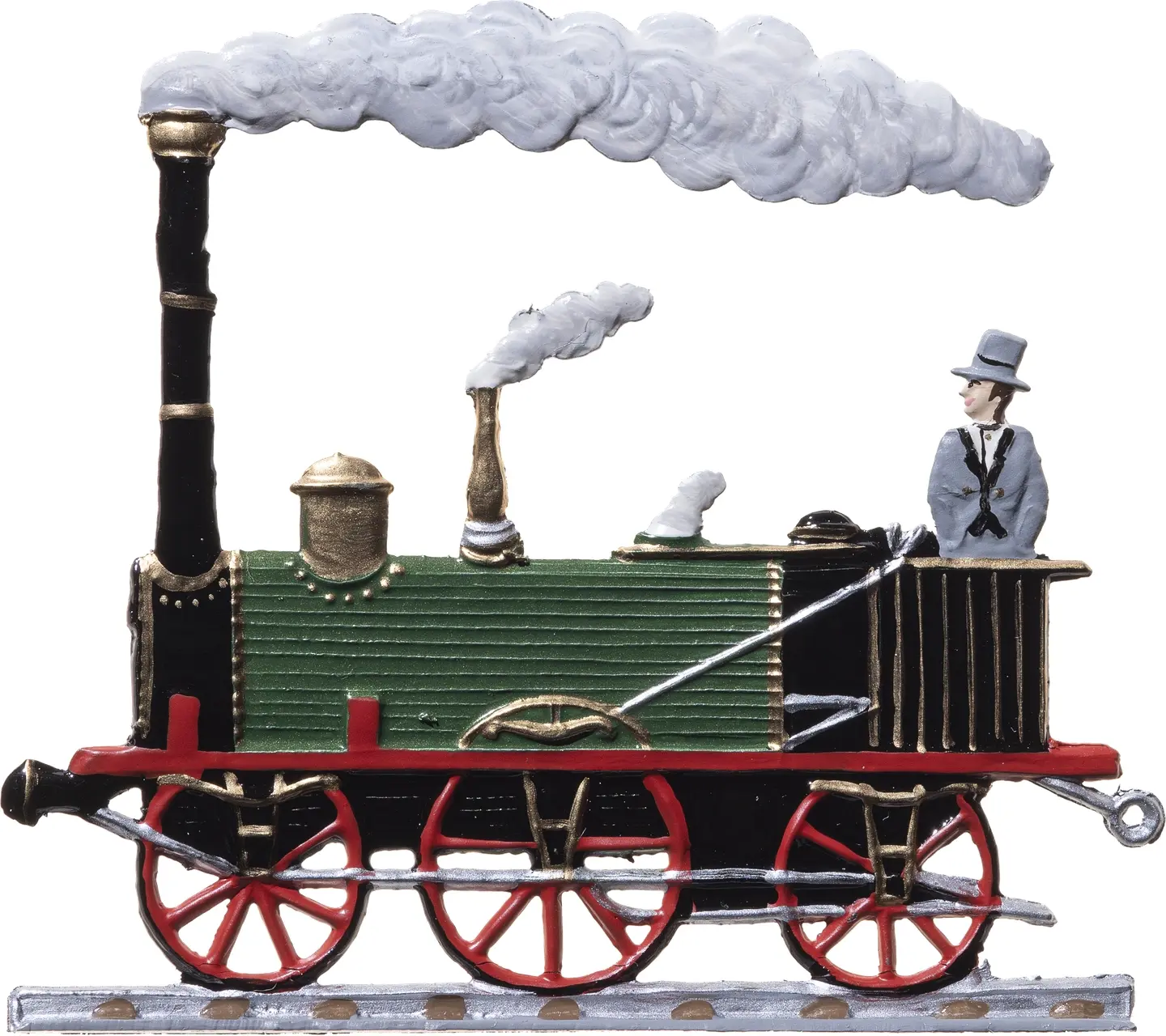 Erleben Sie eine Zeitreise mit dieser detailreichen Darstellung der historischen Lokomotive und ihren Waggons. Fein ausgearbeitet, vermittelt diese Figur den Charme und die Eleganz vergangener Tage. Jede Figur zeigt lebendig gestaltete Passagiere in traditioneller Kleidung, bereit für eine nostalgische Fahrt durch die Ära der Dampfzüge. Ein wunderbares Stück für Sammler und Liebhaber der Eisenbahngeschichte und ein echter Blickfang in jeder Vitrine. Ideal für Momente, in denen die Zeit still zu stehen scheint.