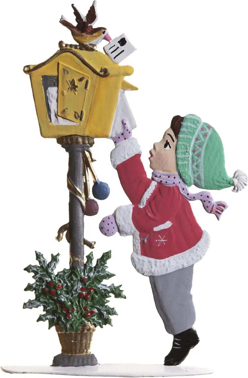 8 x 5 cmDiese entzückende Figur, welche eine kleine Person zeigt, die voller Vorfreude einen Brief in einen verzierten Briefkasten steckt, fängt die zauberhafte Erwartung der Festtage ein. Liebevoll und filigran gestaltet, verleiht sie jedem Raum einen Hauch von winterlichem Zauber. Ein Must-have für Sammler und Ideal als Geschenk, um die Wärme und den Geist der Weihnachtszeit zu teilen. Ideal für jeden, der sein Interieur mit einer Prise nostalgischem Charme veredeln möchte.