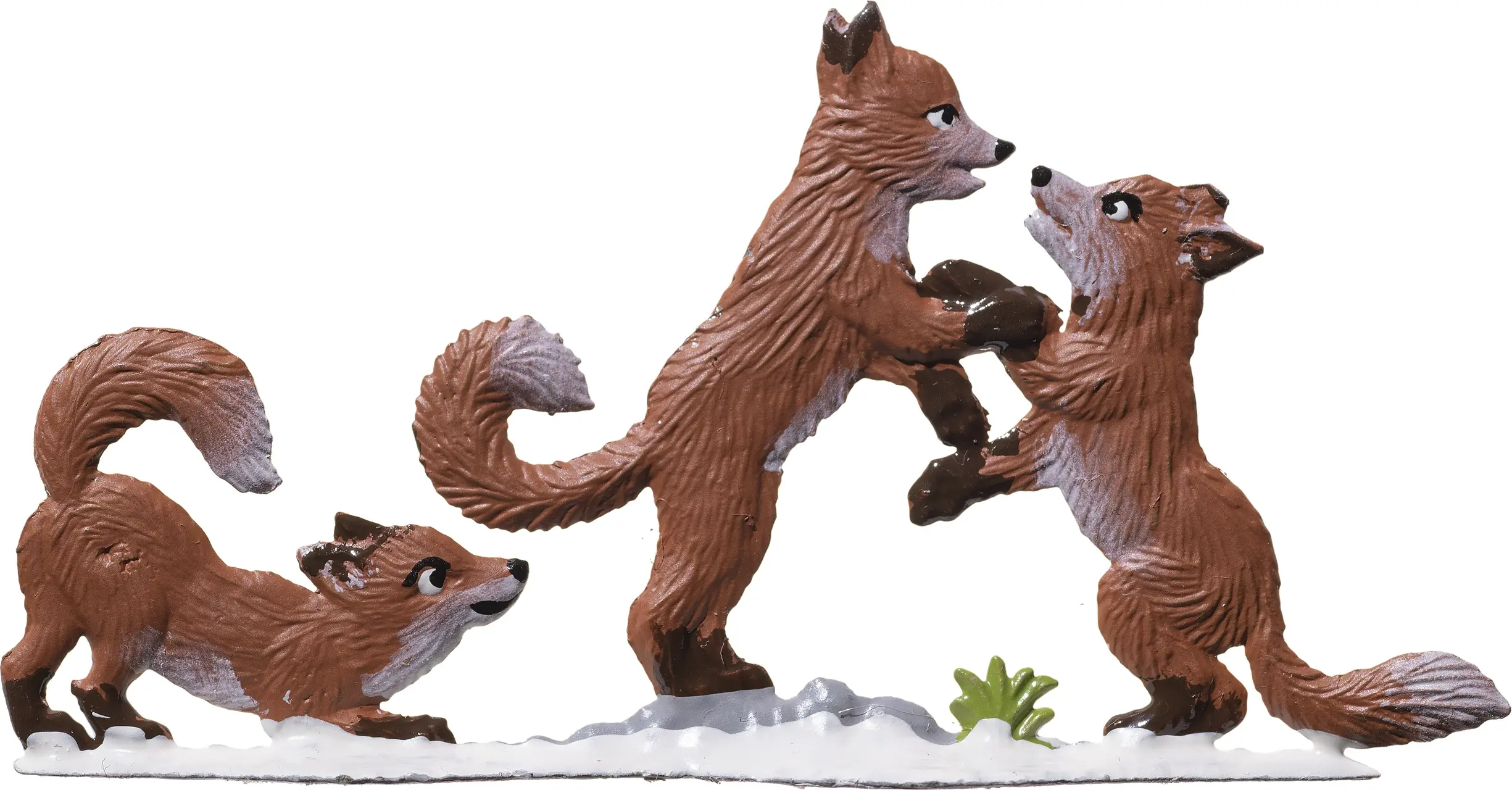 3 x 6 cmErleben Sie die spielerische Verspieltheit der Natur mit dieser entzückenden Zinnfigur, die drei junge Waldbewohner beim ausgelassenen Spiel in einer winterlichen Szenerie zeigt. Jedes Detail wurde liebevoll gestaltet, um die Dynamik und den Charme dieser lebhaften Szene einfangen zu können. Ideal für Sammler von Naturmotiven oder als bezauberndes Geschenk. Maße: 3x6 cm. Ein echtes Meisterwerk für jede Vitrine!