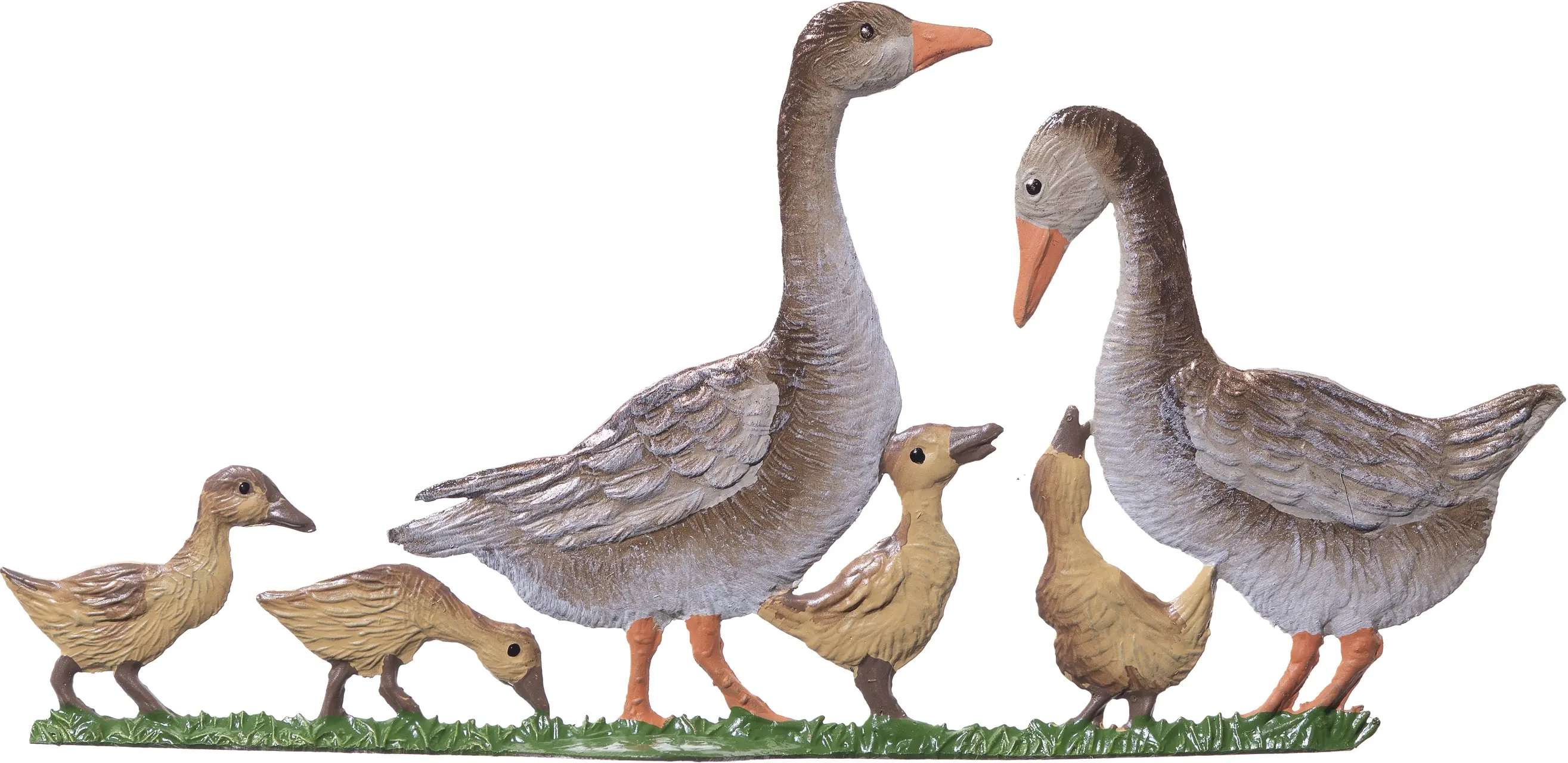 5 x 11 cmEntdecken Sie die ruhige Anmut einer entzückenden Federfamilie, liebevoll dargestellt in einer reizvollen, ländlichen Szene. Diese charmante Darstellung zeigt zwei umsichtige Eltern, die stolz und aufmerksam ihre Jungen anführen. Ideal für Liebhaber der ländlichen Idylle und perfekt als Geschenk oder zierendes Element in jedem Heim. Diese handgefertigte Figur versprüht eine beruhigende Aura, die jedes Wohnambiente bereichert. Ein zeitloses Stück, das Naturverbundenheit und familiäre Fürsorge symbolisiert.