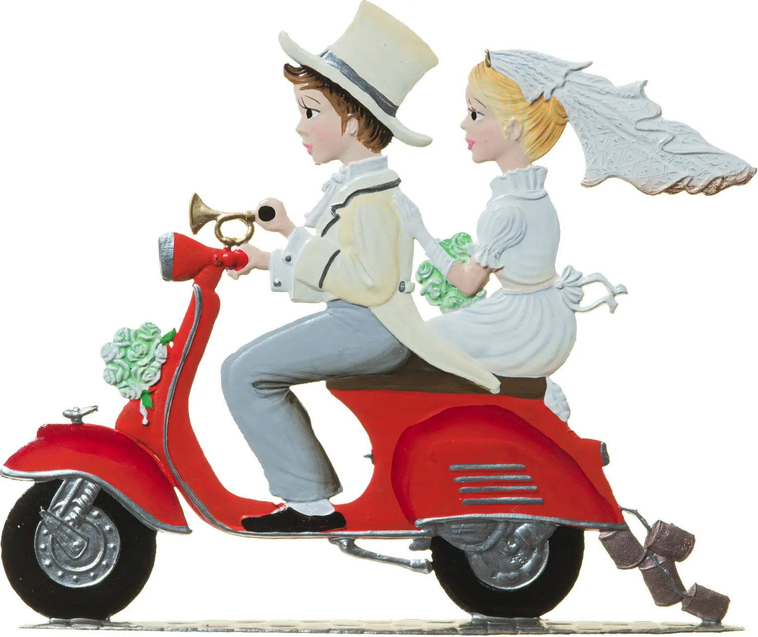 10 x 12 cmEntdecken Sie den Zauber des schönsten Tages im Leben mit dieser entzückenden Zinnfigur. Das lebendige, detailreiche Design fängt die fröhliche Ausfahrt eines frisch vermählten Paares auf einem Roller brillant ein - eine charmante Darstellung von Liebe und gemeinsamem Glück. Ein wundervolles Geschenk für Hochzeitspaare oder als bleibende Erinnerung an den eigenen besonderen Tag. Diese Figur verleiht jeder Festdekoration eine persönliche und herzliche Note. Ideal für Sammler und Romantiker gleichermaßen.
