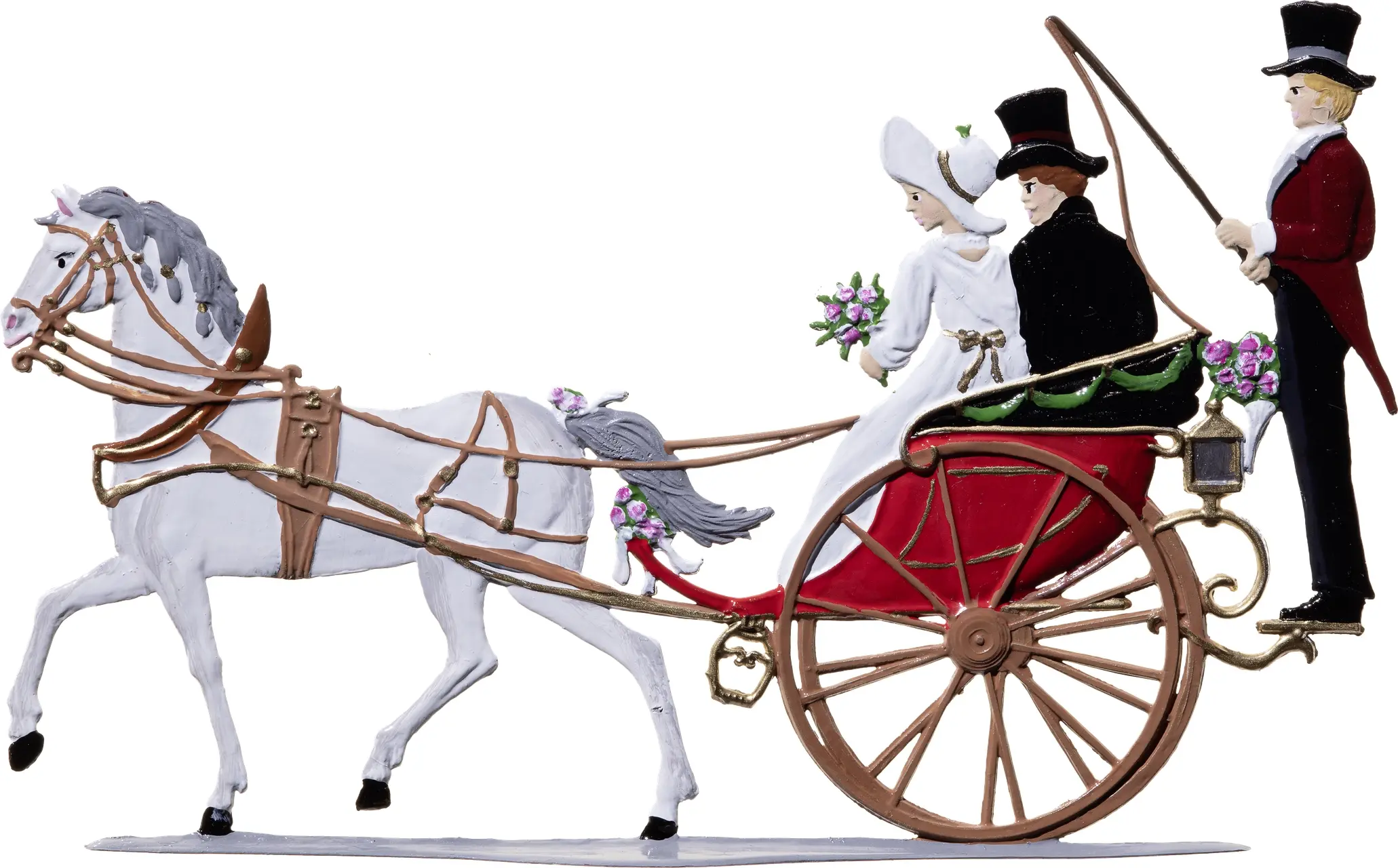 15 x 10 cmEntdecken Sie diese exquisite Darstellung von Parade und Mitgift im detailreichen Design: ein raffiniert gestaltetes Pferdegespann mit einem frisch verheirateten Paar. Die zarte Braut neben dem stolzen Bräutigam ist wundervoll dargestellt, beide sitzen bequem, geführt von einem skillierten Kutscher, einer charakteristischen und aussagekräftigen Figur. Diese exklusive Zinnfigur ist in schlichtem Weiß gehalten und fügt sich harmonisch in jede Sammlung oder Dekoration ein. Erleben Sie die Faszination des Brauchtums aus vergangenen Zeiten!
