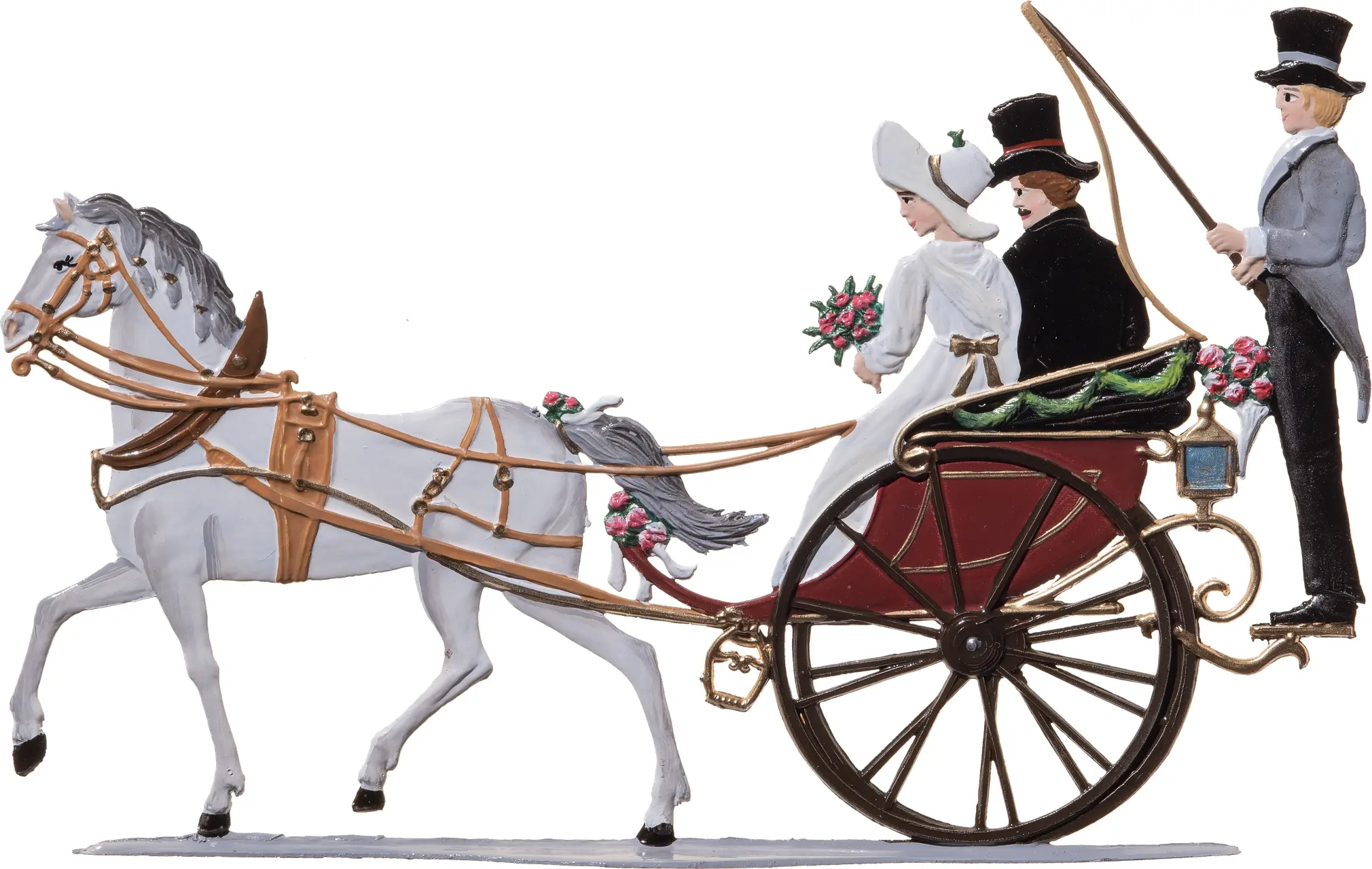 9 x 15 cmZelebrieren Sie den Zauber des schönsten Tags im Leben mit diesem exquisiten Dekorationsstück. Jedes Detail dieser Kutsche wurde präzise gestaltet, um eine Atmosphäre von Eleganz und Romantik zu schaffen. Ideal als Geschenk oder für eigene festliche Anlässe. Lassen Sie sich von dieser traditionellen Darstellung eines glücklichen Moments verzaubern. Ein Klassiker, der jedes Zuhause verschönert und an den Zauber des Ja-Wortes erinnert. Maße: 15 x 9 x 1,9 cm. Ideal für Sammler und Liebhaber einzigartiger Dekorationsstücke.