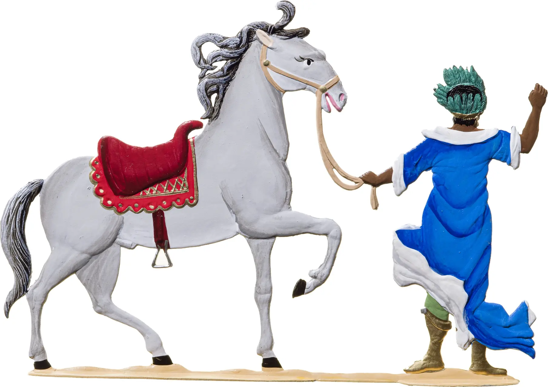 10 x 14 cmVerleihen Sie Ihrer Weihnachtsdekoration mit dieser kunstvoll gestalteten Zinnfigur einen Hauch von Eleganz und Geschichtscharme. Dargestellt ist ein dynamischer Page, der voller Freude ein prächtiges Pferd führt. Diese Figur, in der Größe 10x14 cm, fügt jeder Krippe oder Festtagsgestaltung ein Element traditioneller Handwerkskunst hinzu. Perfekt für Sammler und Liebhaber detailreicher Handarbeit, um die Weihnachtszeit mit einer Note von Klassik zu bereichern. Ideal als Geschenk oder als besonderer Blickfang in Ihrem Zuhause.
