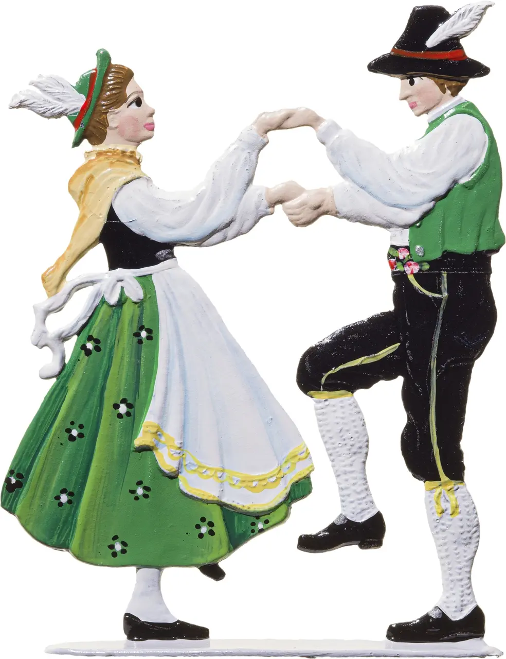 7 x 5 cmErleben Sie die Freude einer bayerischen Tradition mit dieser bezaubernden Zinnfigur. Hier tanzt ein Paar in volkstümlicher Tracht, Hand in Hand, in einer ausgelassenen Szenerie. Die detailreiche Darstellung und die lebendige Pose der Figuren fangen den Geist und die Energie eines echten bayrischen Tanzes ein. Mit einer Größe von 7x5 cm eignet sich diese fein gearbeitete Figur perfekt als Schmuckstück für jede Sammlung oder als einzigartiges Geschenk, das die Herzen von Liebhabern regionaler Kunstwerke höher schlagen lässt.