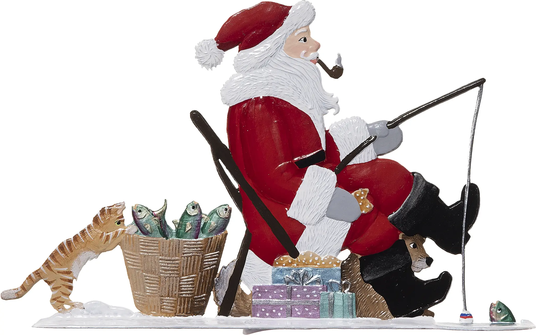 13 x 8 cmTauchen Sie in die festliche Jahreszeit ein mit dieser charmanten Darstellung eines winterlichen Abenteuers. Umsichtig von seiner traditionellen Kutsche auf eine frostige Eisscholle gewechselt, hält diese liebenswerte Figur den Zauberstab des Winters fest in der Hand. Ein treuer Begleiter in Gestalt eines heimischen Waldtieres sitzt zu seinen Füßen, während unweit von ihm ein Korb voller frisch gefangener Fische darauf wartet, entdeckt zu werden. Ein verspielter Meerestiger schließt sich dem Bild an, um die Szene mit einer Prise Humor zu vervollständigen. Jedes Detail ist sorgfältig gestaltet und lädt dazu ein, sich in einem Raum voller Wärme und Festlichkeit zu verlieren. Ideal für Sammler und als Geschenk geeignet, bringt dieses Kleinod Freude in jede festliche Dekoration.