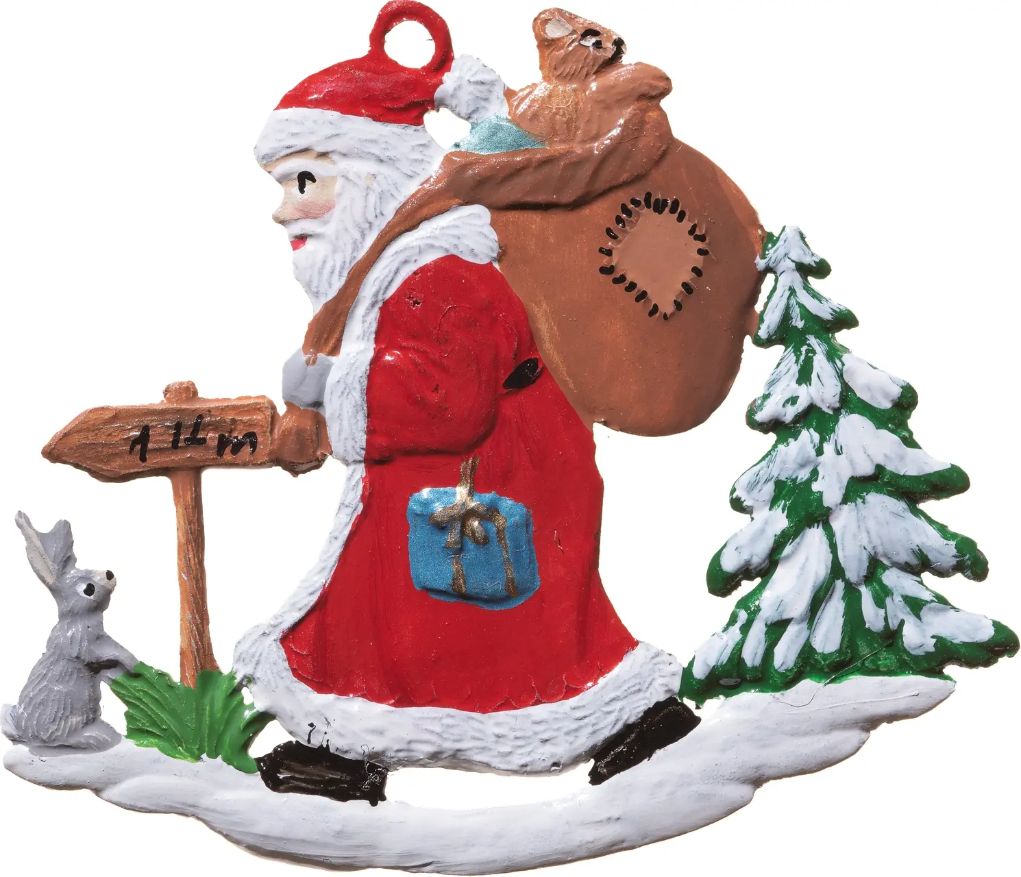 5 x 6 cmEntdecken Sie den Zauber der Weihnachtszeit mit dieser bezaubernden, handgefertigten Zinnfigur. Der Weihnachtsmann auf seiner Wandertour wird begleitet von einem verspielten Hasen und einer idyllischen Winterlandschaft. Diese kleine und fein detaillierte Figur zaubert eine festliche Atmosphäre in jedes Zuhause und ist ein wunderbares Geschenk für Sammler und Liebhaber des einzigartigen Handwerks. Setzen Sie ein Zeichen der Freude in Ihrer Weihnachtsdeko! Ideal für das Festtagsfenster oder den Christbaum.