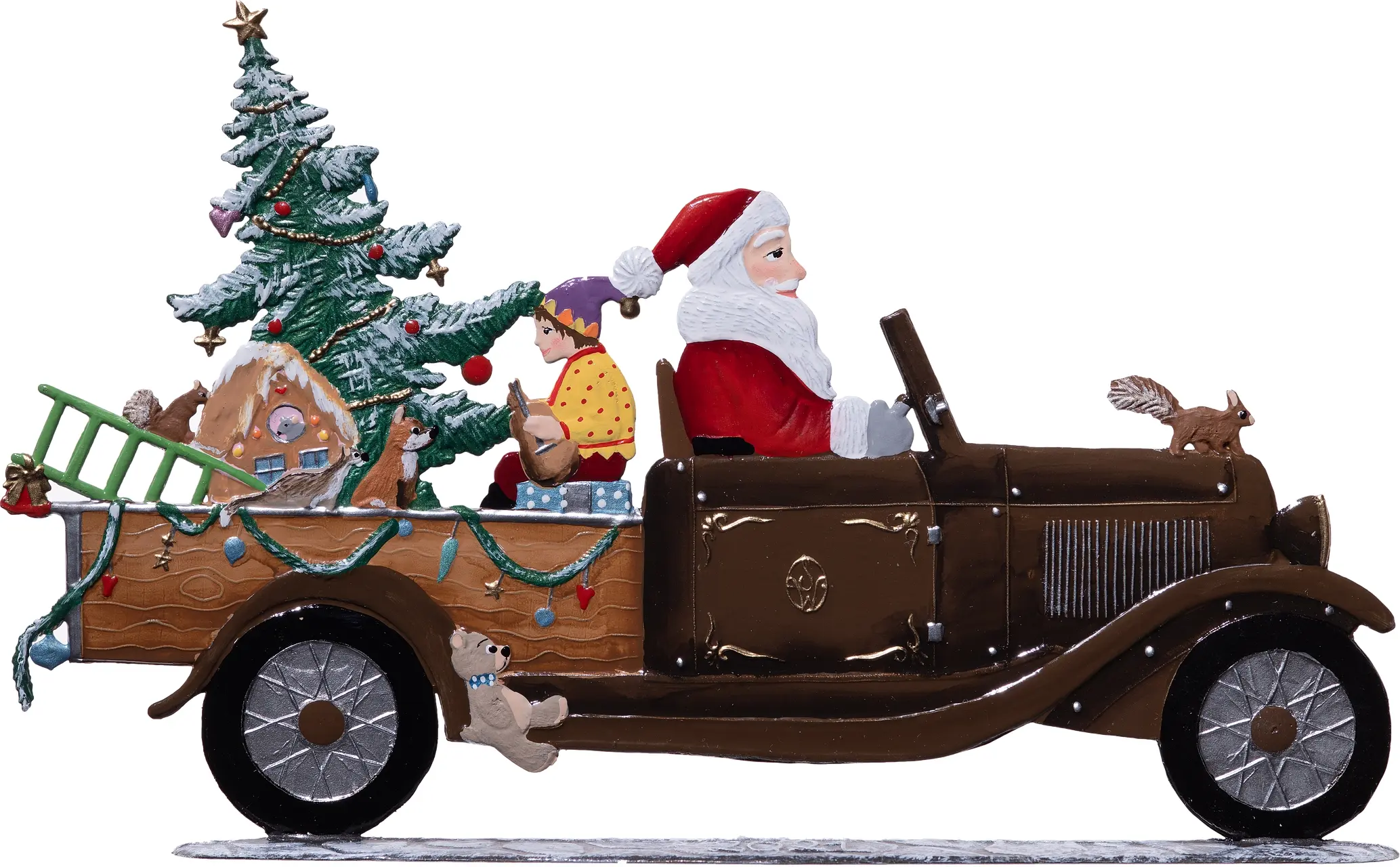 15 x 9 cmBereiten Sie sich auf eine fröhliche Fahrt in die Festtage mit dieser liebenswerten Zinnfigur vor! Unser charmant gestalteter Weihnachtsfahrer hat dieses Jahr seine Rentiere gegen einen nostalgiegeladenen Pickup eingetauscht. An Bord findet sich eine zauberhaft geschmückte Tanne, geschmückt mit Sternen und funkelnden Kugeln, sowie ein fleißiger kleiner Helfer, der letzte Hand an die Weihnachtsdekoration legt. Diese detailreiche Figur bringt das Gefühl alter Weihnachtstraditionen direkt in Ihr Wohnzimmer und versprüht dabei Freude und Festlichkeit. Ideal geeignet für Sammler und alle, die das Besondere lieben. Ein echtes Highlight unter dem Weihnachtsbaum oder auf dem festlichen Tisch!